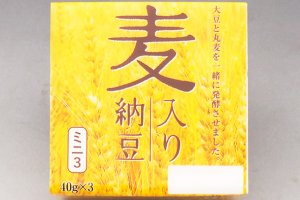 This natto is fermented with pearl barley grown in Japan and soy beans in the ratio of 15 :100. High-fiber pearl barley is mixed with soy beans, which are rich in protein but have lower fiber, to make this product perfectly nutritious. It has been on the market for over 26 years and is very popular with our staff too.