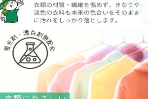 センイや手肌をいためず、しつこい汚れもカンタンに落とします。少量でよく落ちる、液体だから溶け残りがない。蛍光増白剤や漂白剤は無配合なので、赤ちゃん用の衣服も、きなりや淡い柄物にも安心してご使用出来ます。排水口のニオイの素も生分解。洗濯機まわりはスッキリ。使用後の排水が洗濯槽クリーナーへ。