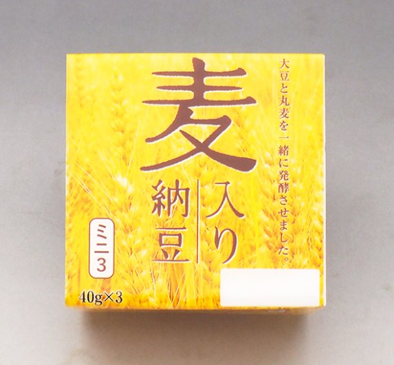 大豆100に対し国産丸麦を15配合し、一緒に発酵させた納豆です。大豆には豊富なたんぱく質が含まれますが、食物繊維は比較的少ないため、豊富な食物繊維を有する丸麦を大豆に混ぜ込んで、栄養バランスが良い納豆に仕上げました。社員にも大変人気があり、販売歴史は26年以上です。
