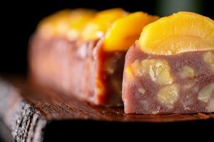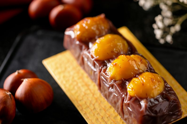 ホクホク感を活かすため栗を砕いて羊羹に混ぜ込み、風味と食感を最大限に引き出しました。